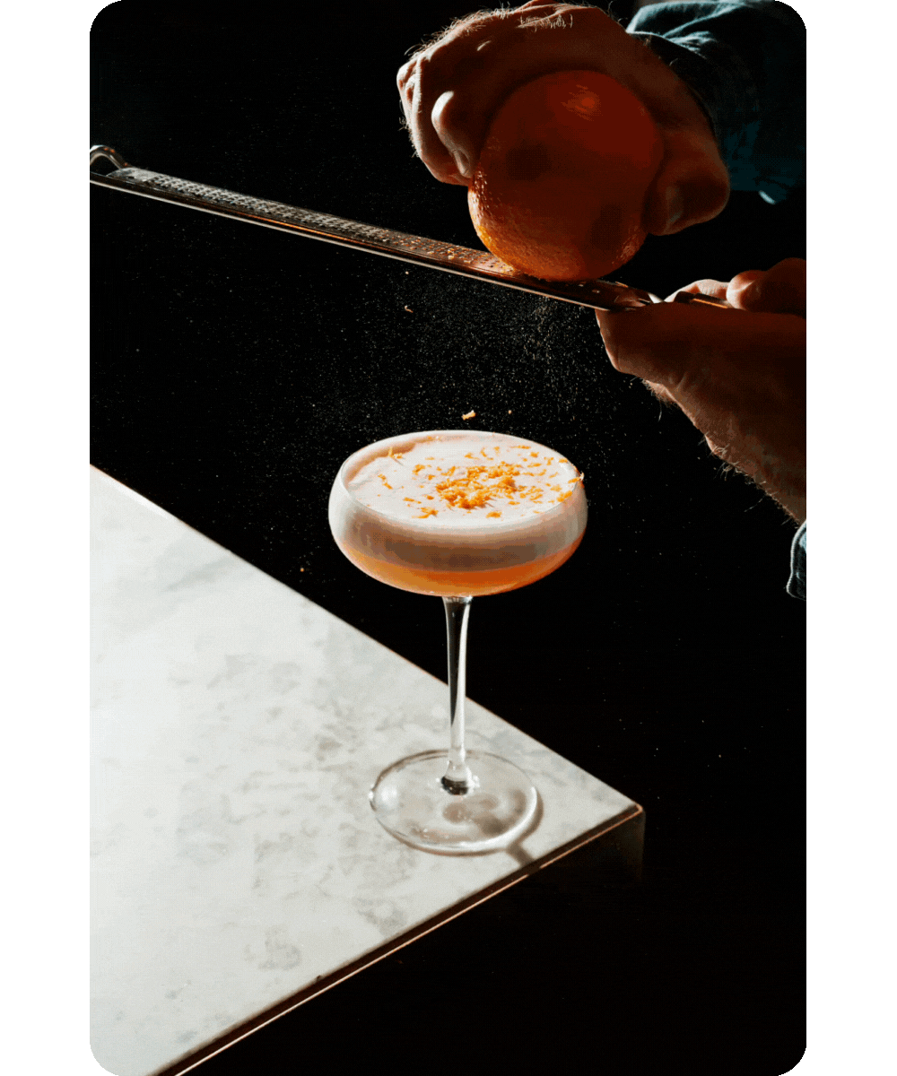 20ml Egg White or equivalentAdd all ingredient into shaker, dry shake then wet shake double strain into chilled cocktail glass, express lemon zest over top garnished with grated lemon zest.